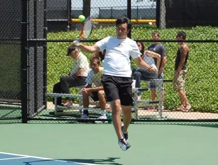 The Pirates came back strong against Austin College in their next match. Alex Lam and D'Art Bebel defeated Rousch/Cook 8-2 in #1 doubles while Alec Bergerson and Alexander Reinsch easily handled Grander/Kunde 8-1 in the #3 slot. Andrew Olsson and Andy Clarage were just points away from making it a sweep in doubles as they fell 9-8 (4) to Bengston/Taylor.